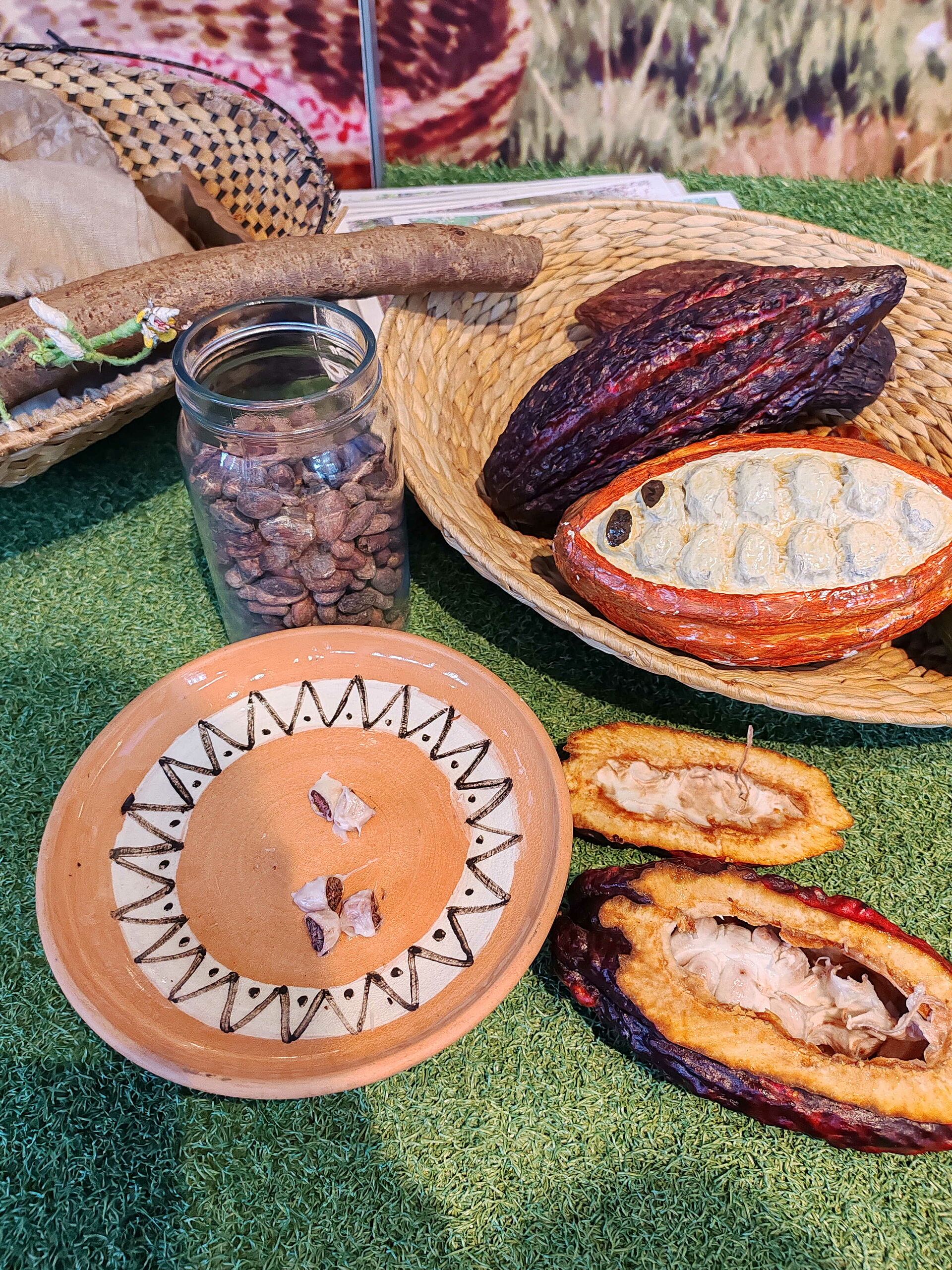 Die Ausstellung zeigt anschaulich den Weg des Kakaos von der Kakaopflanze bis zur fertigen Schokolade. Dabei wurden Anbaugebiete, Verarbeitungsschritte sowie die globale Lieferkette thematisiert. Wir hatten die Möglichkeit frische Kakobohnen zu probieren, mit traditionellen Werkzeugen Kakao zu reiben und im Anschluss unsere eigene Schokolade herzustellen. Natürlich konnten wir diese am Ende auch kosten und mit nach Hause nehmen. Hhhmmmm……….. lecker